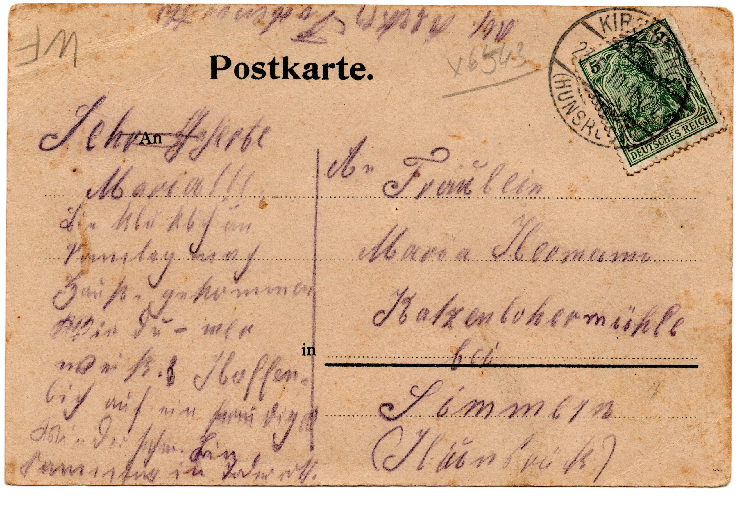 Karte versendet am 23.05.1910 von Todenroth nach Simmern